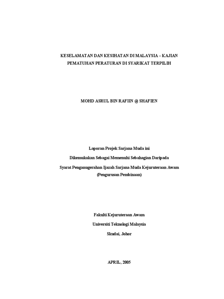 Keselamatan Dan Kesihatan Pekerjaan Pdf